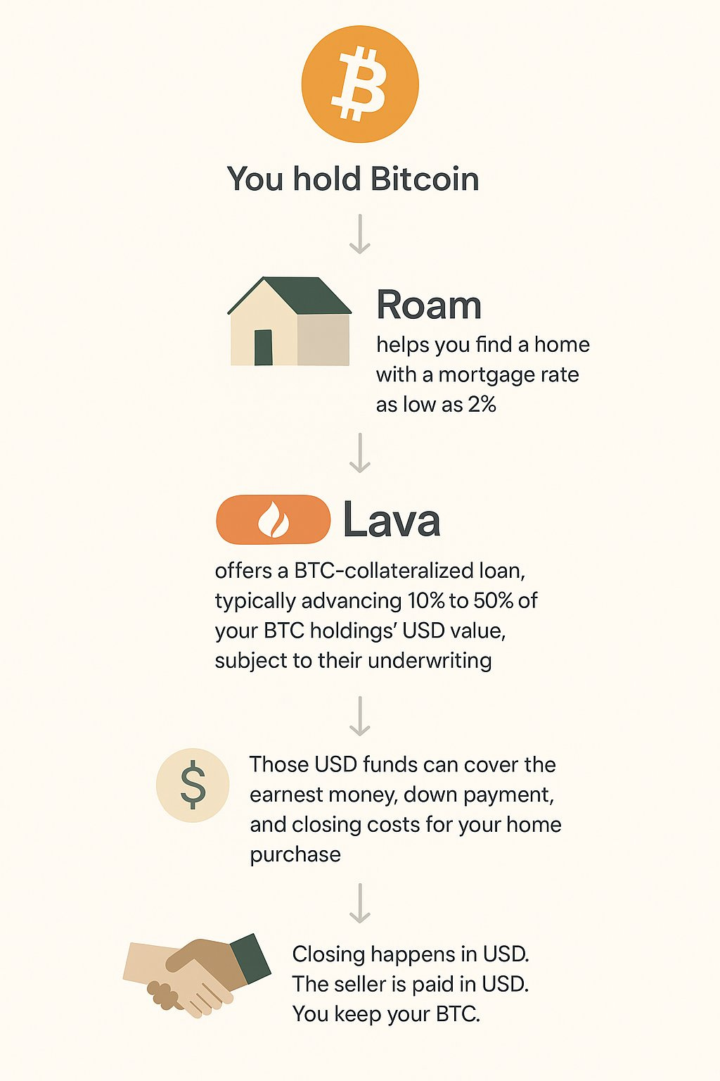 Think about the implications. Bitcoin holders can access real estate without liquidating their position. Sellers can move without losing their great rates. The frozen housing market starts to thaw.