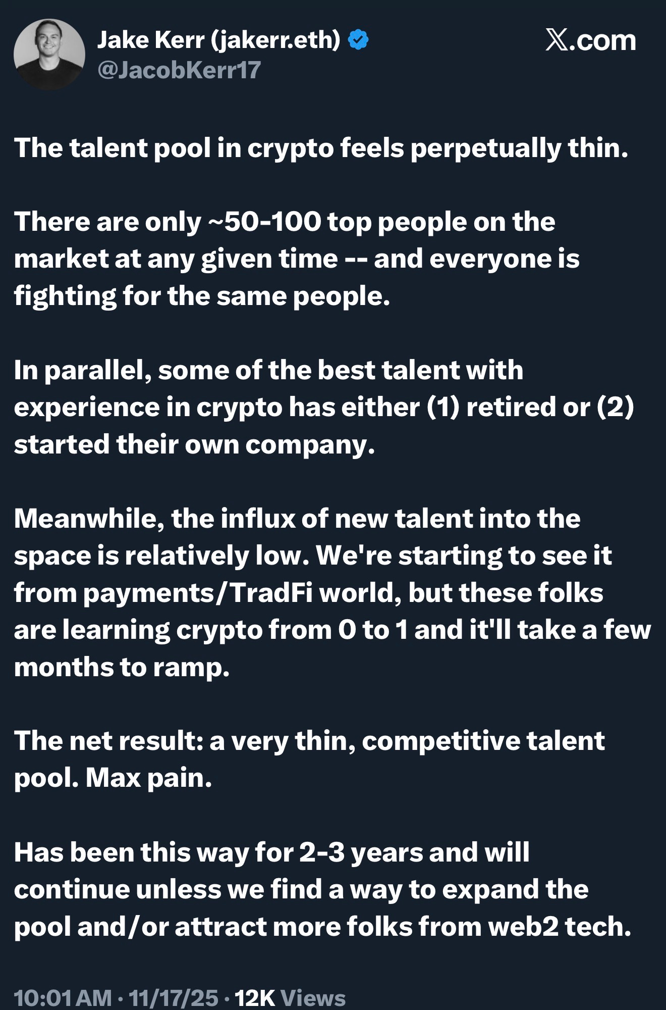 The video featuring college students being asked about crypto eludes to why there is little talent entering the pool, and I believe it’s something we can change through better messaging, and privacy is a universal concern among all demographics.