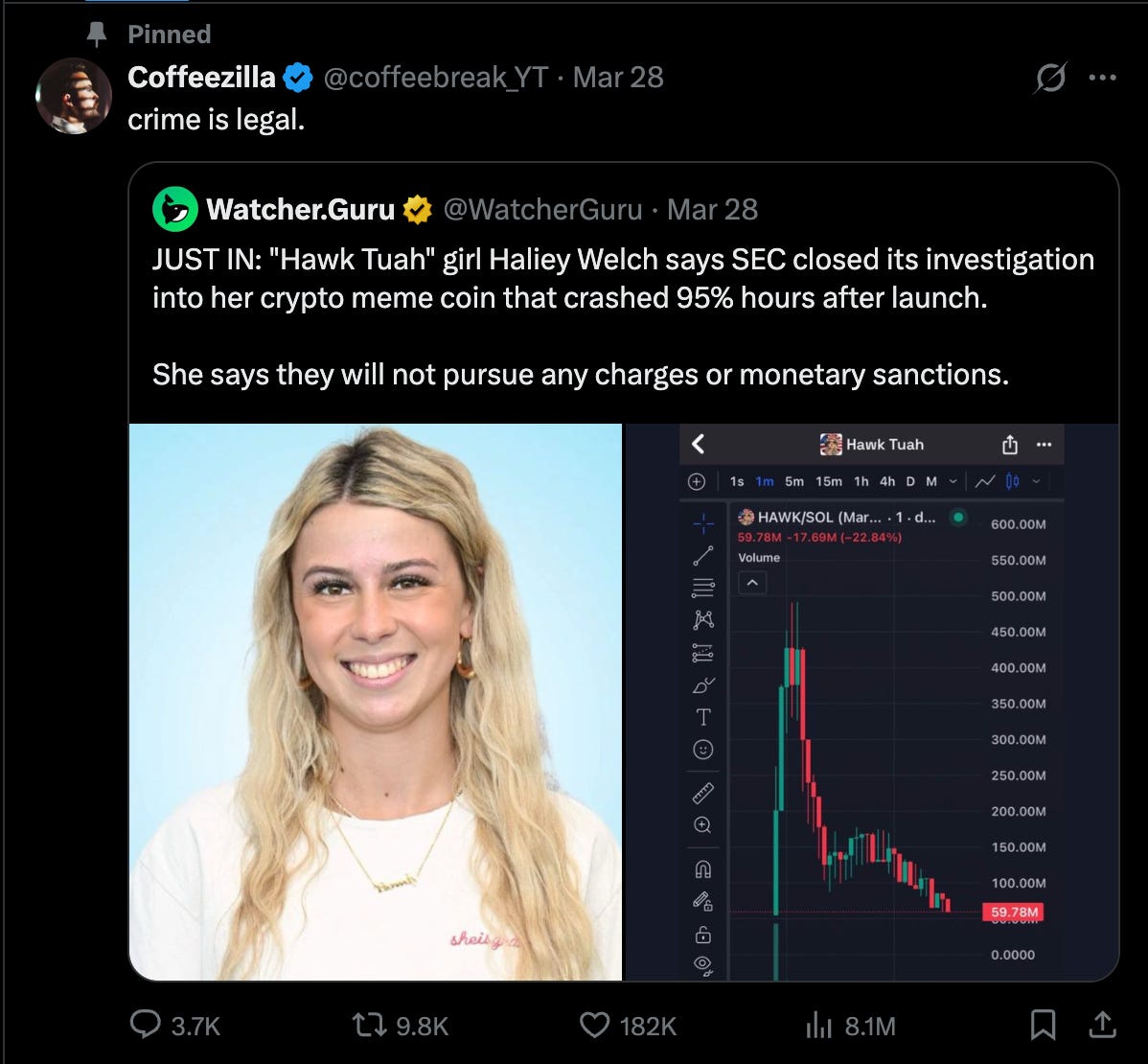 Obviously the Hawk Tuah coin was a scam, but I think we’ll see more of scamming in the future.