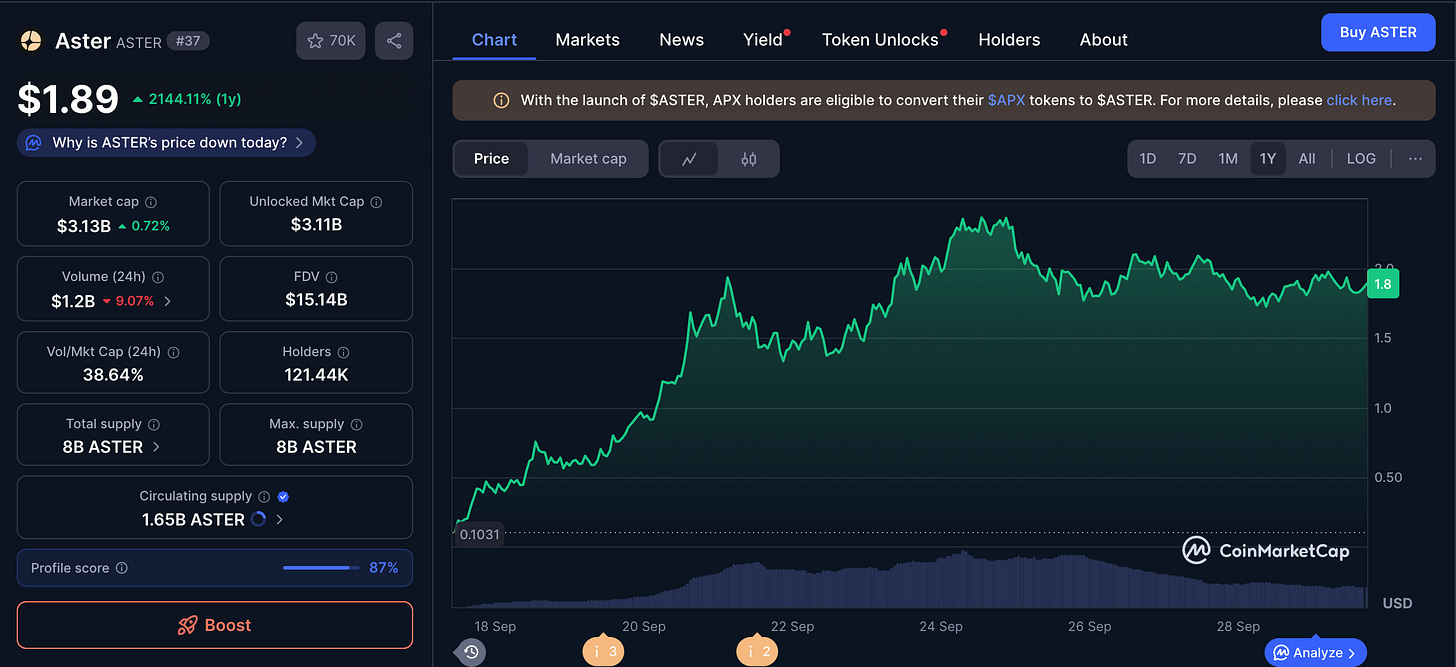 If Hyperliquid built the fastest race car, Aster built the autobahn. Formed in 2024 from the merger of ApolloX and Astherus and backed by Binance Labs, Aster emerged as the multi-chain disruptor designed for a multi-chain world.